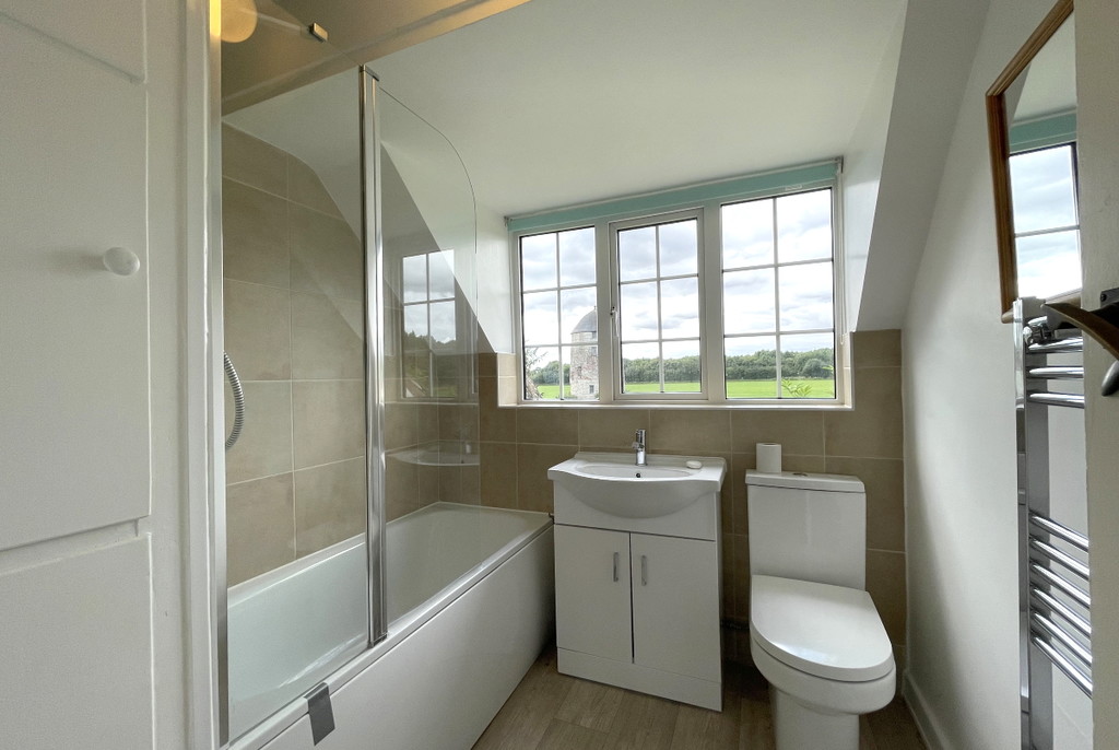 Triple aspect with views to the windmill and open countryside; exposed beams.