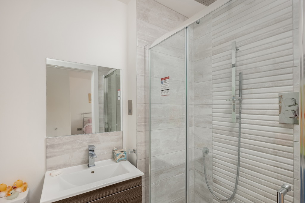 Landing with access to loft space. Bedroom One outlook to the rear, range of built-in wardrobe cupboards and Dressing Area with further storage. Ensuite Shower Room fitted with enclosed double shower cubicle with sliding door, wash hand basin set to vanity unit with storage under, close coupled WC, towel radiator, tiled floor and extractor fan. Bedroom Two outlook to the front of the property. Bathroom fitted with panelled bath with separate shower over, close coupled WC, wall-mounted wash hand basin with storage under, towel radiator, tiled floor and extractor fan.