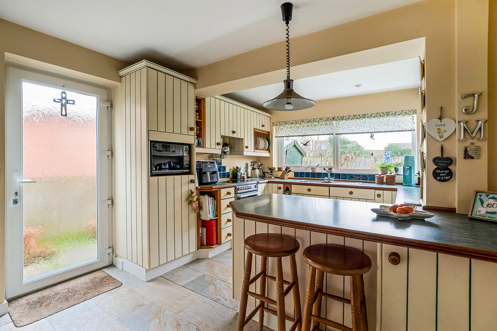 Entrance Porch with glazed front door, window to side and wood flooring. Entrance Hall with under stairs storage. Guest WC with wall-mounted wash hand basin, WC and obscured glazed window. Study with outlook to front of the property, wood flooring and built-in cupboard. Living Room outlook to the front of the property and window to porch. Sitting Dining Room with part-vaulted ceiling and glazed roof, sliding patio doors opening to garden and fireplace with coal effect gas fire. Kitchen/Breakfast Room outlook to the rear of the property and fitted with a range of matching units under granite effect worktops to three walls, returning to the centre of the room with a breakfast bar. Integrated fridge, separate freezer, electric cooker with extractor hood over, space and plumbing for washing machine and space for microwave. Tiled floor, wall-mounted gas fired boiler and glazed door opening to garden.