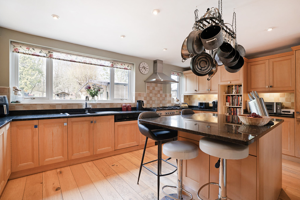 Now offered to the market as a substantial, family size home, the property offers panelled reception hall, four double bedrooms, three generous reception rooms, an open plan kitchen breakfast room, an enclosed rear garden which has been landscaped with terraced flowerbeds, large patio and mature lawn and trees.