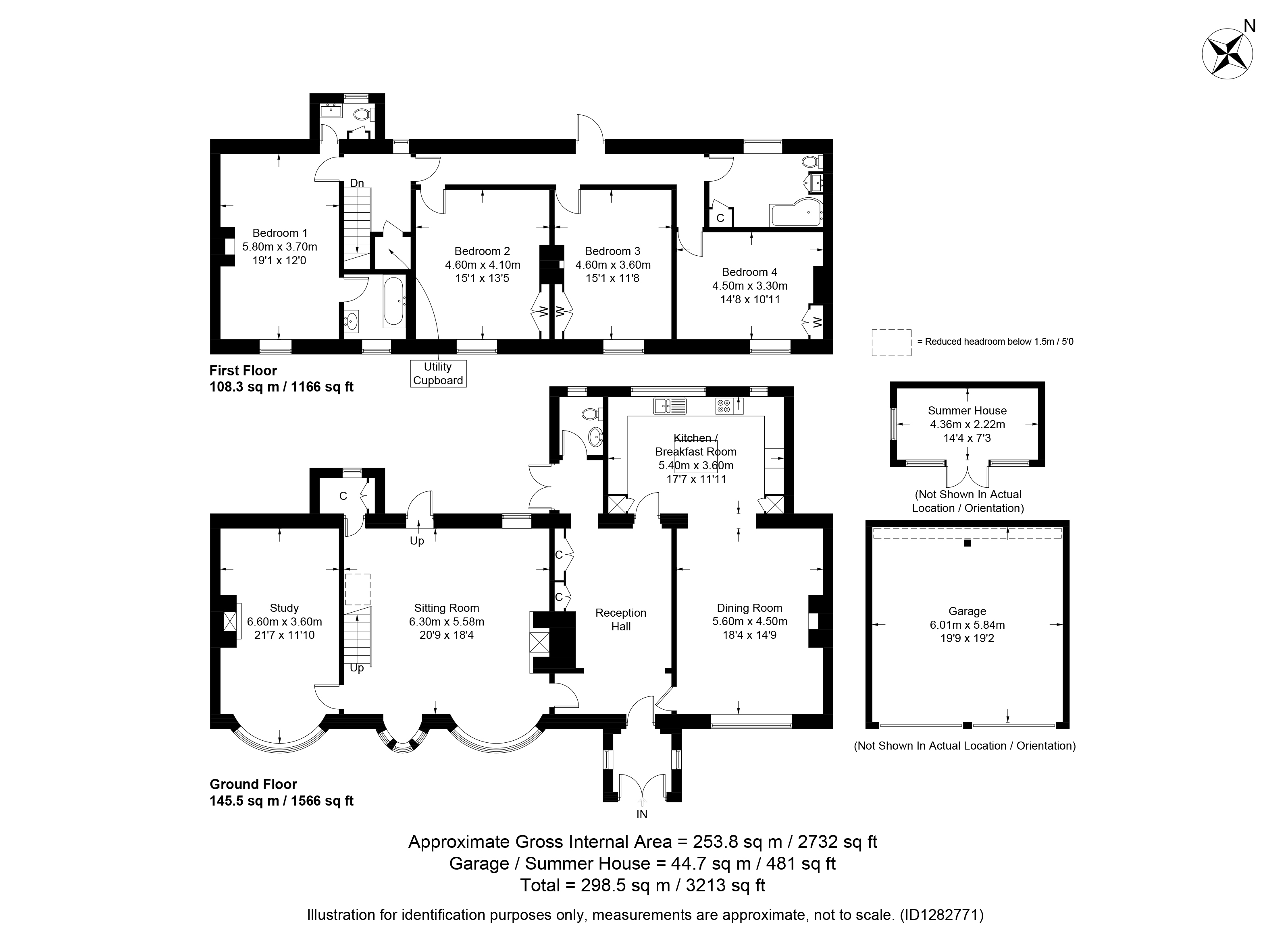 Landing windows to rear and access to loft space. Utility Cupboard with space and plumbing for washing machine and tumble dryer. Bedroom One outlook to the front and ornamental brick fireplace. Ensuite Bathroom double-ended bath with central mixer tap and shower over, wash hand basin set to vanity unit with storage under, window to front, extractor fan and towel radiator. WC with close coupled WC, pedestal wash hand basin, towel radiator, built-in storage and outlook to rear. Bedroom Two outlook to the front and built-in double wardrobe. Bedroom Three outlook to the front of the property and built-in double wardrobe. Bedroom Four outlook to the front of the property and built-in double wardrobe. Bathroom with L - shaped bath and shower over, close coupled WC, wash hand basin set to vanity unit with storage under, built-in linen cupboard, towel radiator and outlook to the rear of the property.